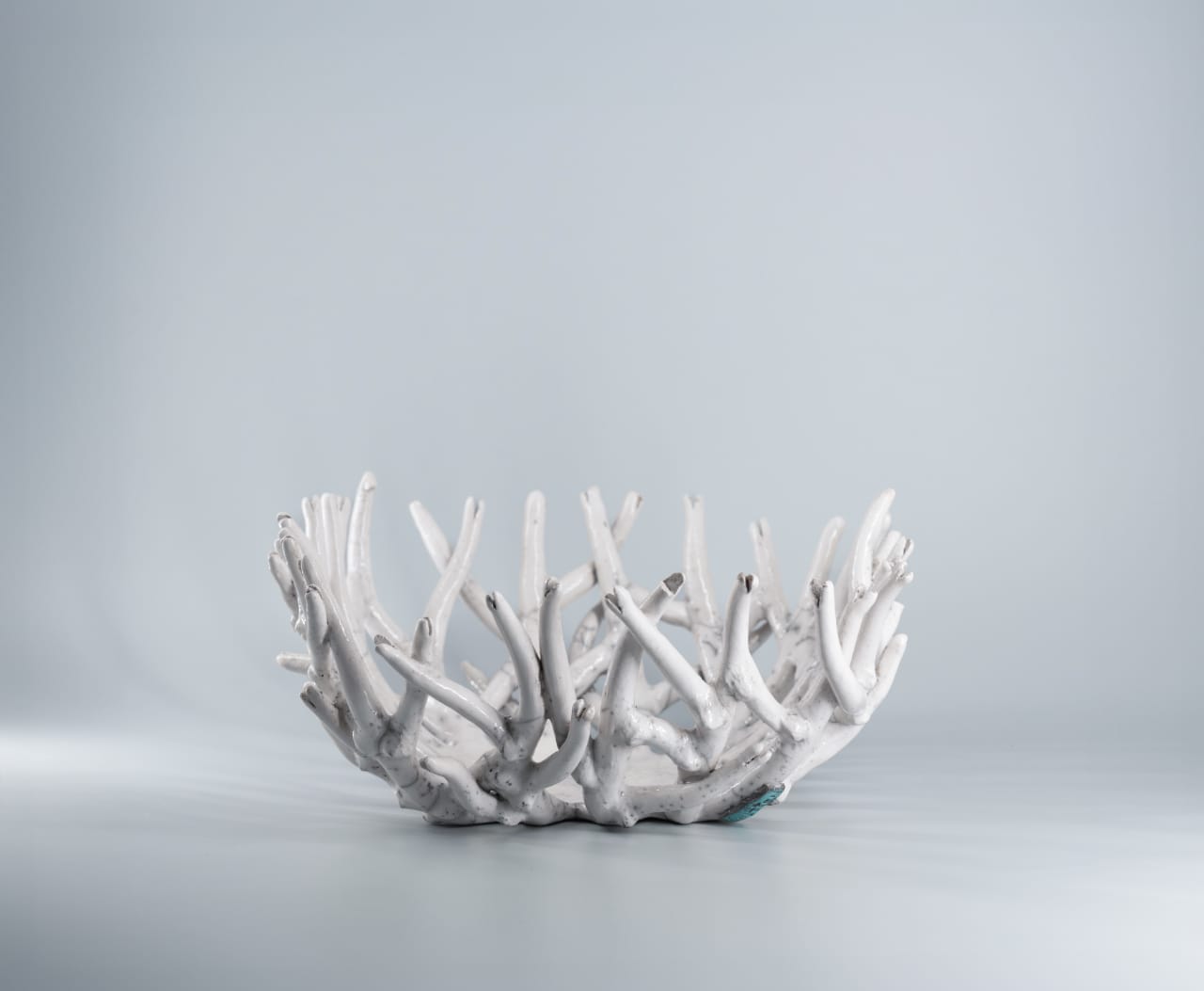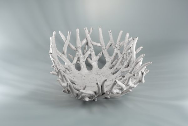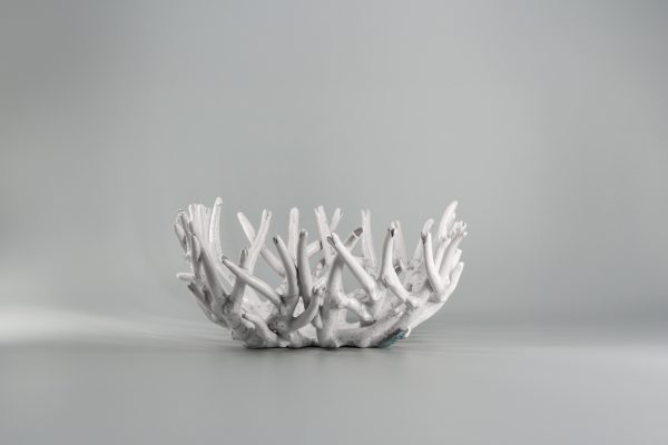 Coupe corail blanc en céramique Raku, avec l’entrelacement délicat de ses branches, crée un jeu d’ajours qui évoque à la fois la beauté brute et naturelle des fonds marins. Sa forme organique et apaisant diffuse une ambiance zen, parfaite pour apporter une touche d’élégance et de sérénité à tout espace, dimension H 20 cm x L 27 cm.
