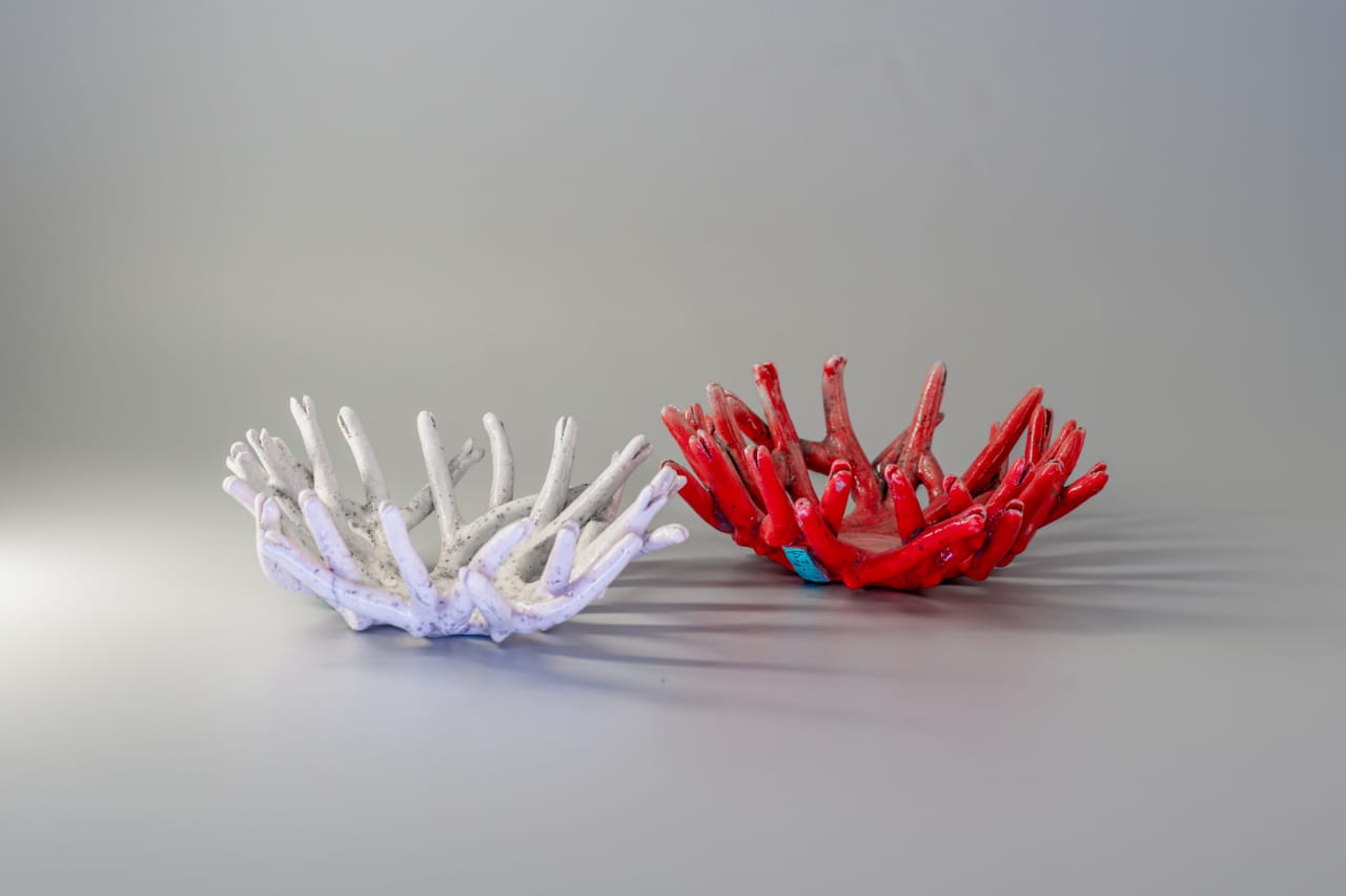 Coupe corail blanc en céramique Raku, avec l'entr