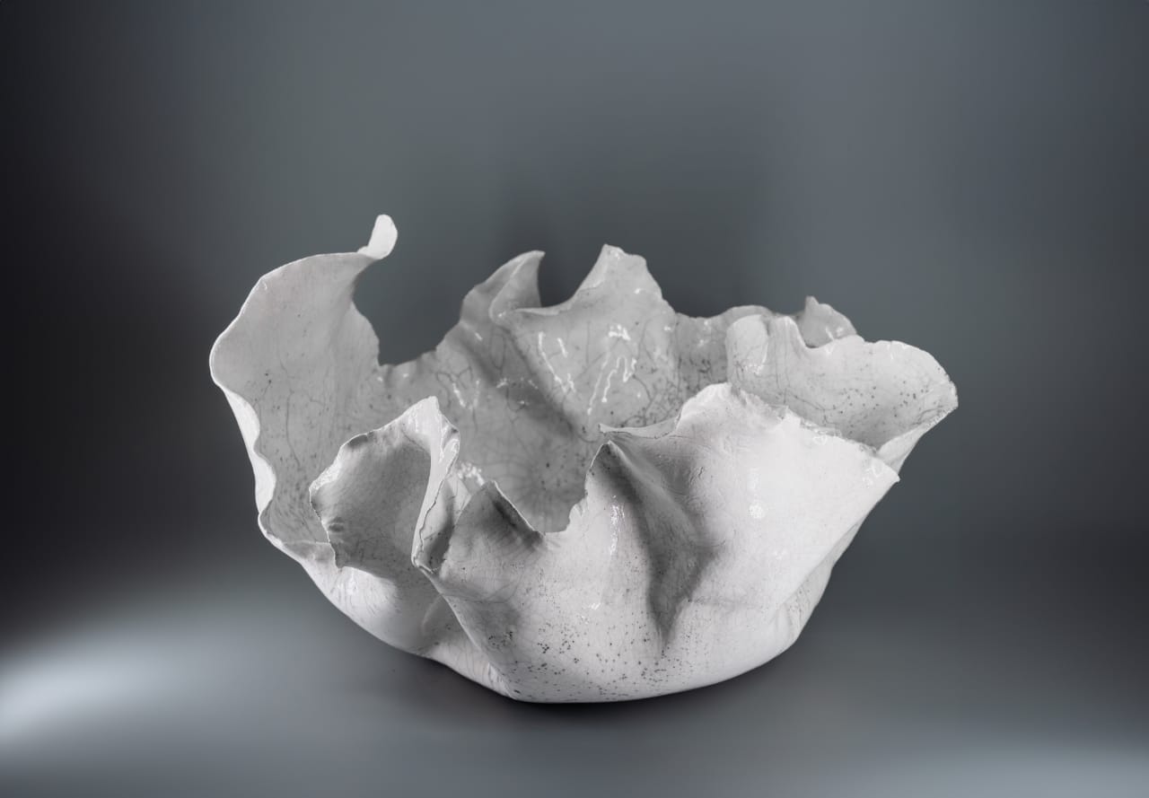 Bol en céramique Raku, avec ses plis délicatement façonnés dans l’argile, s’inspire des écrits de Gilles DELEUZE pour évoquer la notion de pli et de replie à l’infini. Sa forme organique et fluide incarne la pureté et la légèreté, apportant une dimension philosophique et artistique à l’intérieur de l’espace, tout en créant une atmosphère empreinte de sérénité et de profondeur, dimension H 35 cm x D 45 cm.
