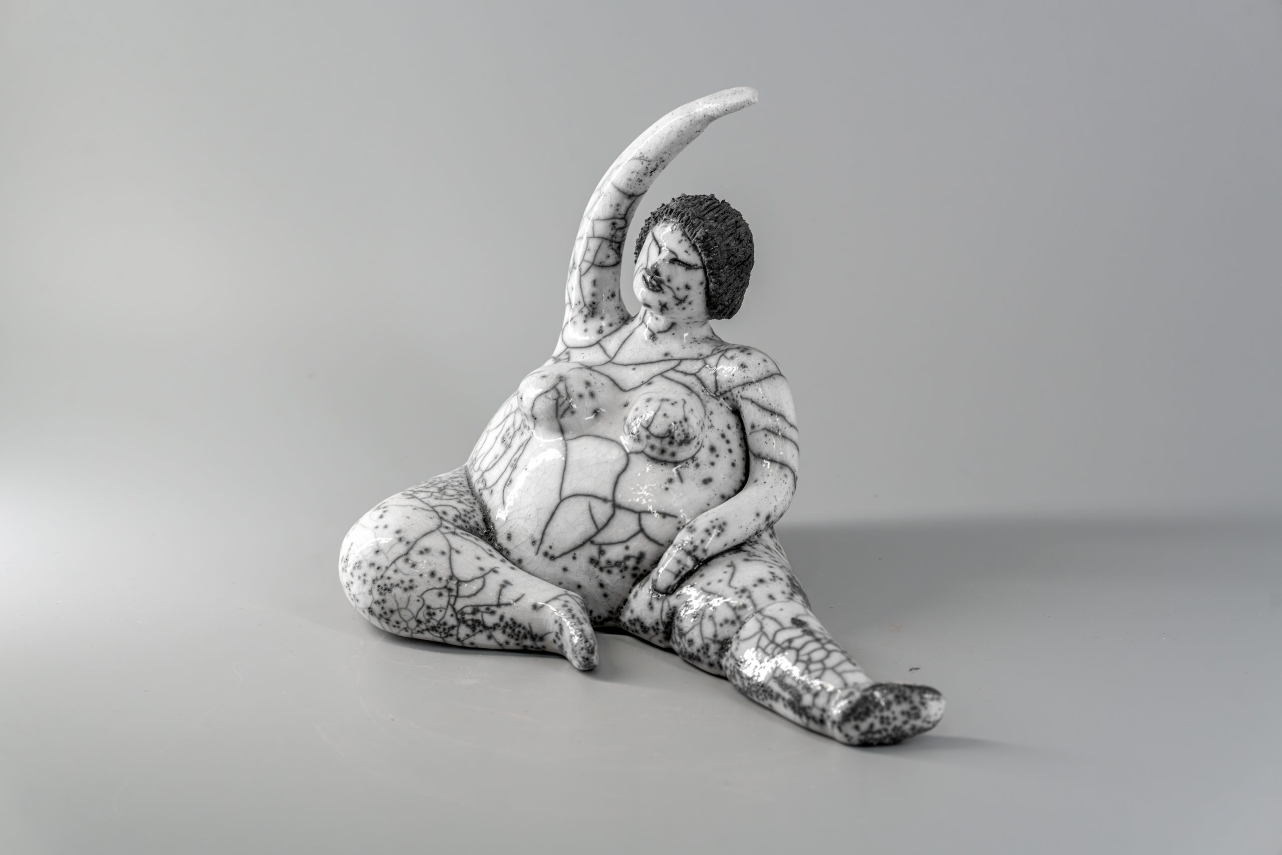 Sculpture d’une femme assise dans une posture zen, réalisée en céramique Raku, révèle des formes généreuses et simplifiées qui dégagent une grande sérénité. Sa forme épuré et sa finition unique en font une pièce idéale pour sublimer tout espace personnalisé, apportant une touche d’équilibre et de calme, dimension H 14 cm x L 11 cm x P 14 cm.
